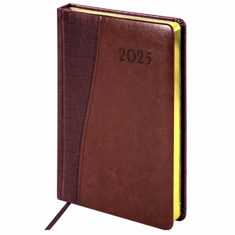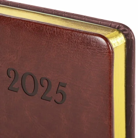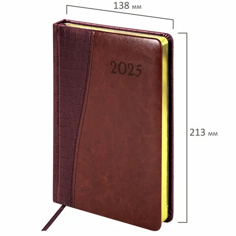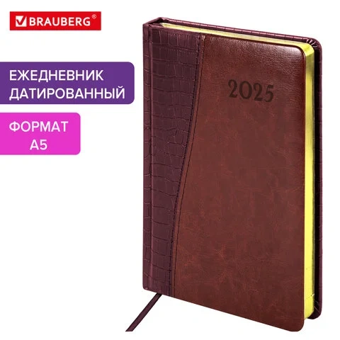 Ежедневник датированный 2025, А5, 138x213 мм, BRAUBERG 'Cayman', под кожу, коричневый, 115769