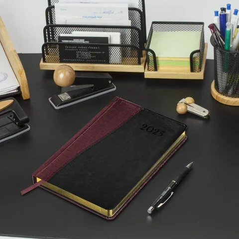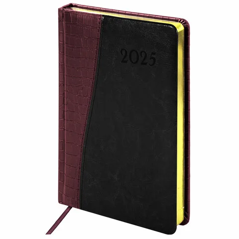 Ежедневник датированный 2025, А5, 138x213 мм, BRAUBERG 'Cayman', под кожу, коричневый/черный, 115771