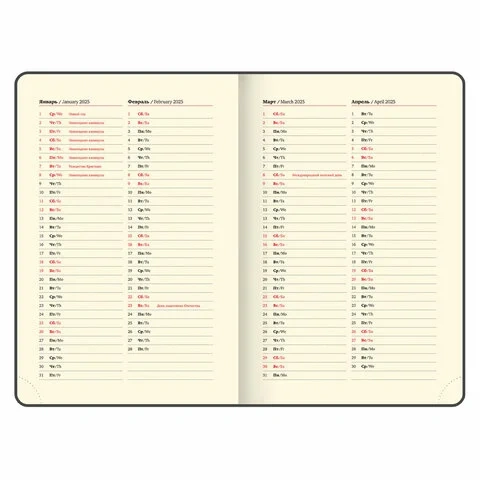 Дополнением является закладка-ляссе, с помощью которой при необходимости можно быстро открыть ежедневник на нужной странице. Ежедневник снабжен обширным справочным материалом. В конце имеются 4 страницы для записей и заметок.