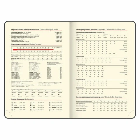 Дополнением является закладка-ляссе, с помощью которой при необходимости можно быстро открыть ежедневник на нужной странице. Ежедневник снабжен обширным справочным материалом. В конце имеются 4 страницы для записей и заметок.
