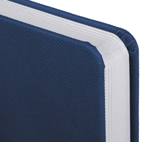 Жесткая книжная обложка благородного синего цвета стилизована под искусственную кожу с мелким рисунком. Обложка фиксируется резинкой, поэтому ежедневник не откроется в сумке или портфеле и страницы не помнутся. Материал обложки подходит для горячего тиснения.