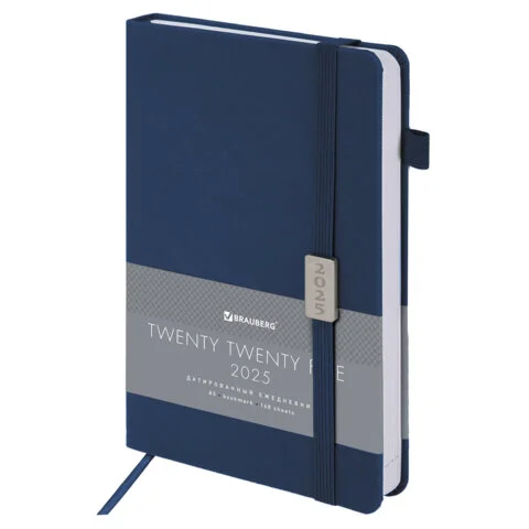 Ежедневник датированный 2025, А5, 138x213 мм, BRAUBERG 'Control', под кожу, держатель для ручки, син