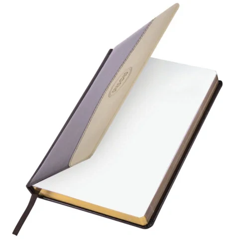 Внутренний блок включает 168 листов белой бумаги плотностью 70 г/м2. Каждая страничка имеет перфорированный угол. Благодаря стандартному формату А5 (138х213 мм) ежедневник удобно использовать как в офисе, так и на выездных деловых встречах. Твердая обложка стилизована под гладкую кожу. Подходит для горячего тиснения. Срез ежедневника фольгирован золотой фольгой, что придает ему особый шарм.