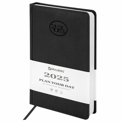 Ежедневник датированный 2025, А5, 138x213 мм, BRAUBERG 'Favorite', под кожу, черный, 115762
