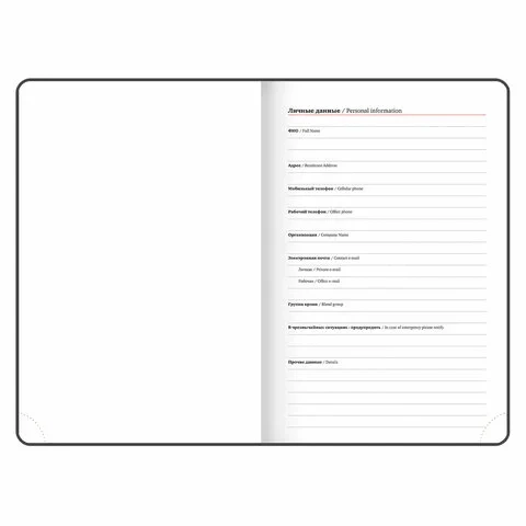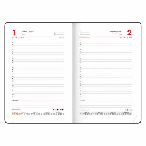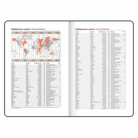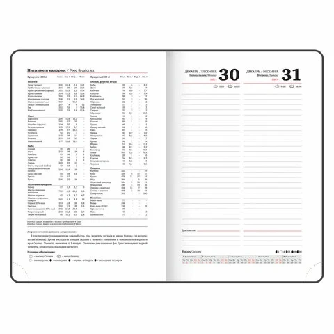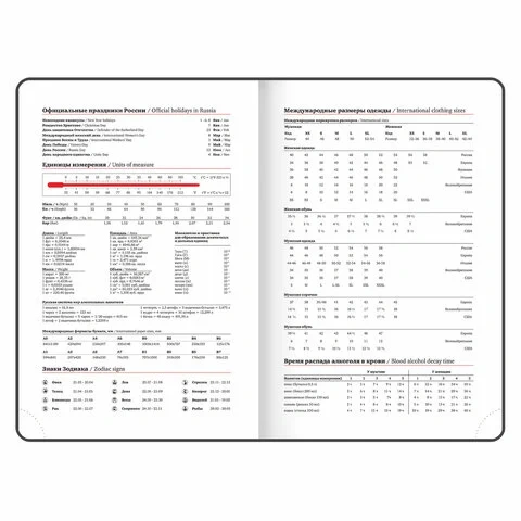 Ежедневник снабжен обширным справочным материалом. В конце имеются 4 страницы для записей и заметок.