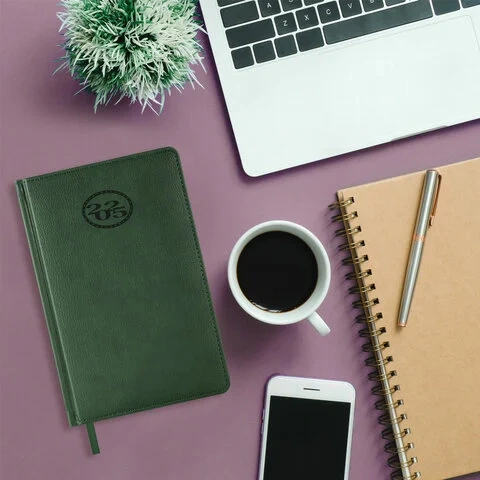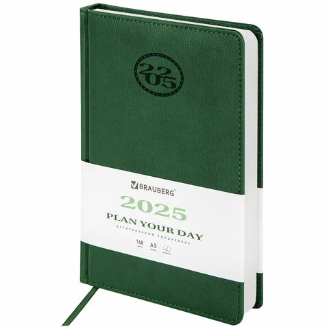Ежедневник датированный 2025, А5, 138x213 мм, BRAUBERG 'Favorite', под кожу, зеленый, 115763