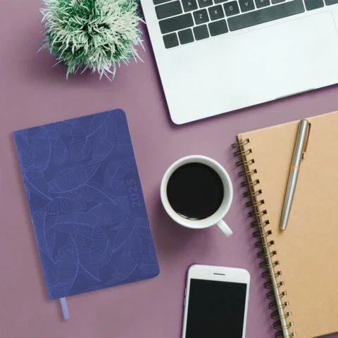 Ежедневник датированный 2025, А5, 138x213 мм, BRAUBERG 'Foliage', под кожу гибкий, сиреневый, 115855