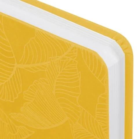 Мягкая (интегральная) обложка по-летнему яркого желтого цвета под гладкую кожу имеет декоративное тиснение, что придает ежедневнику особый шарм. Материал обложки подходит для горячего тиснения. Дополнением является закладка-ляссе, с помощью которой при необходимости можно быстро открыть ежедневник на нужной странице. Ежедневник снабжен обширным справочным материалом. В конце имеются 4 страницы для записей и заметок.