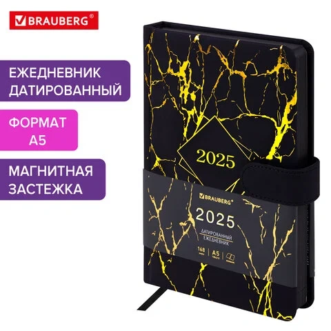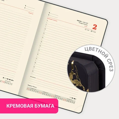 Датированный ежедневник BRAUBERG 'Goldy' идеально подойдет для офисных работников и людей, занимающихся бизнесом.