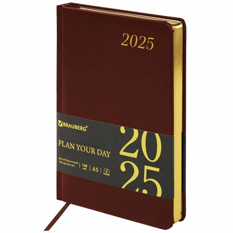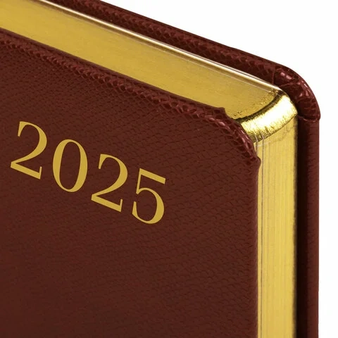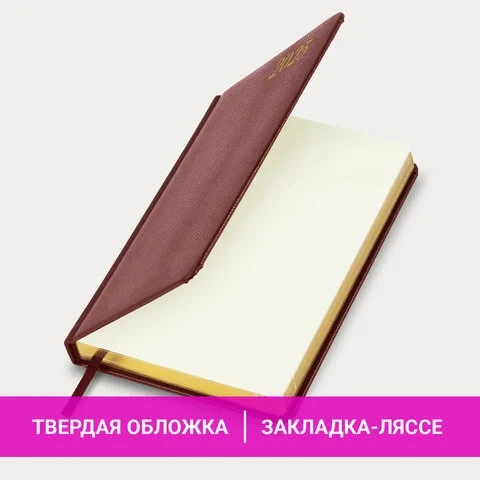 Внутренний блок включает 168 листов тонированной бумаги плотностью 70 г/м2. Каждая страничка имеет перфорированный угол. Благодаря стандартному формату А5 (138х213 мм) ежедневник удобно использовать как в офисе, так и на выездных деловых встречах. Твердая обложка классического коричневого цвета стилизована под кожу рептилии. Подходит для горячего тиснения. Срез ежедневника фольгирован золотой фольгой, что придает ему особый шарм. Дополнением является закладка-ляссе, с помощью которой при необходимости можно быстро открыть ежедневник на нужной странице.