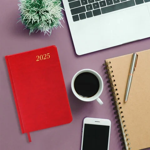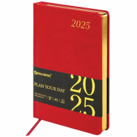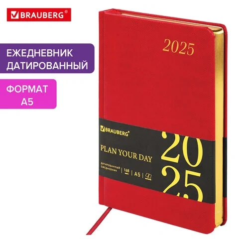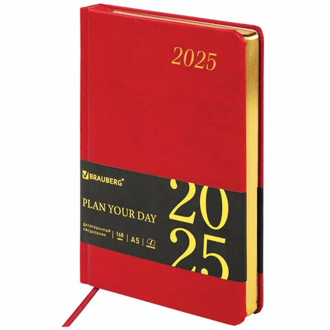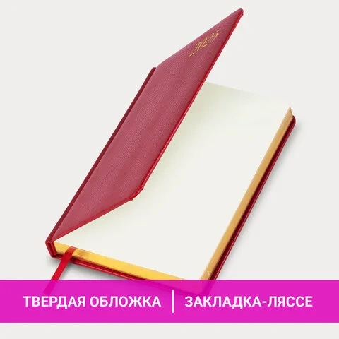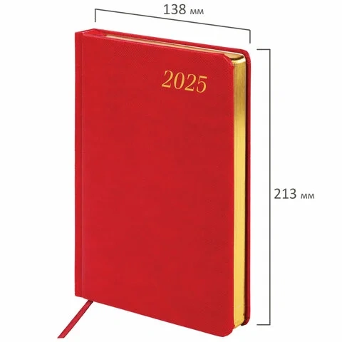 Ежедневник датированный 2025, А5, 138x213 мм, BRAUBERG 'Iguana', под кожу, красный, 115780