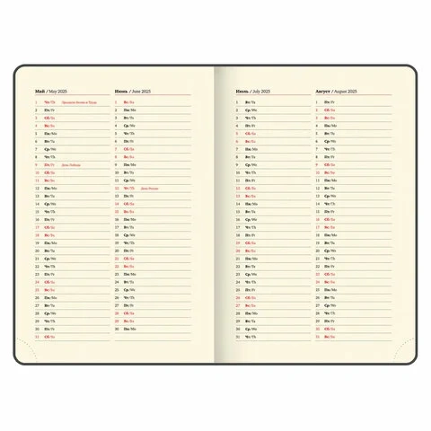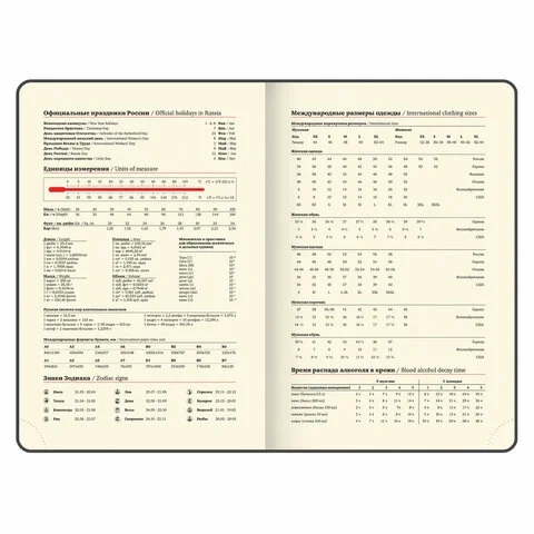 Дополнением является закладка-ляссе, с помощью которой при необходимости можно быстро открыть ежедневник на нужной странице. Помимо прочего, ежедневник снабжен обширным справочным материалом.