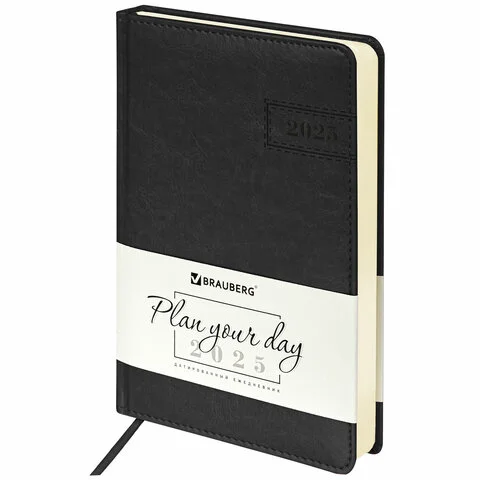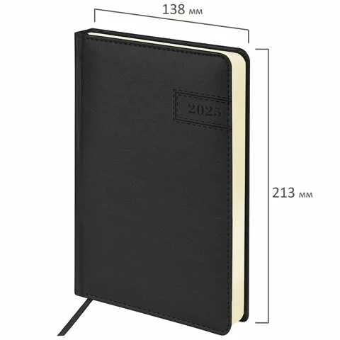 Ежедневник датированный 2025, А5, 138x213 мм, BRAUBERG 'Imperial', под кожу, черный, 115788