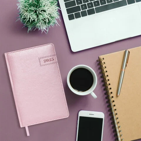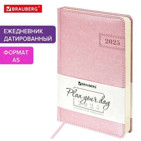 Ежедневник датированный 2025, А5, 138x213 мм, BRAUBERG 'Imperial', под кожу, розовый, 115790