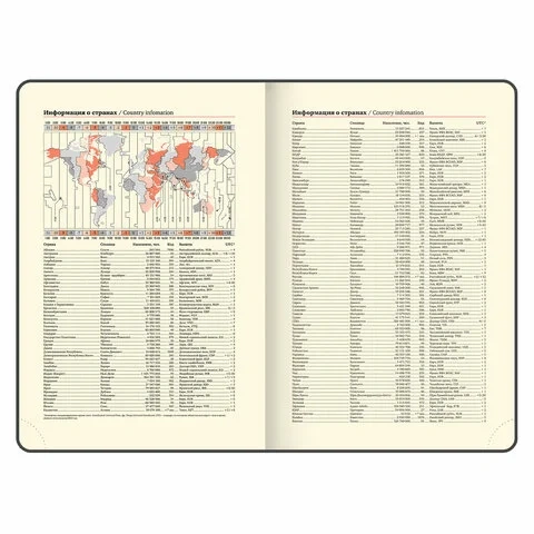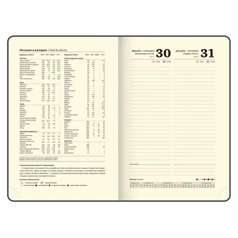 Ежедневник снабжен обширным справочным материалом. В конце имеются 4 страницы для записей и заметок.