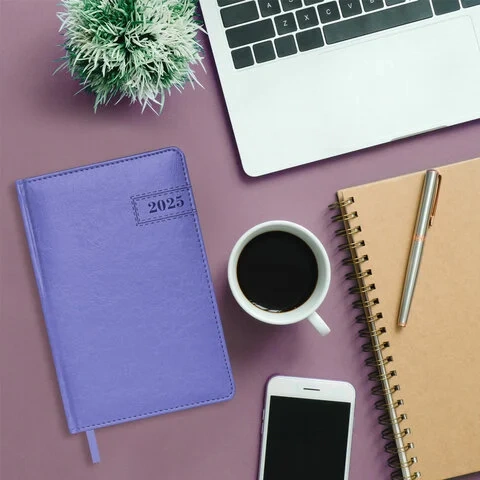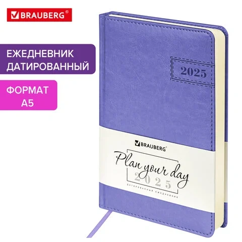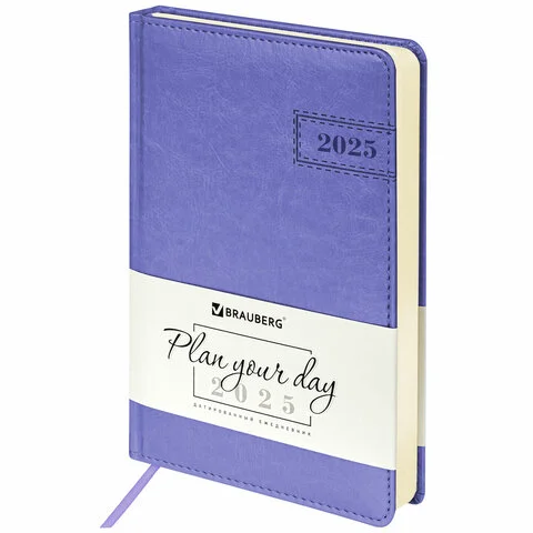 Ежедневник датированный 2025, А5, 138x213 мм, BRAUBERG 'Imperial', под кожу, сиреневый, 115789