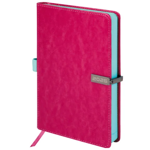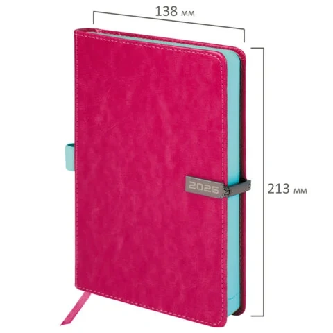 Ежедневник датированный 2025, А5, 138x213 мм, BRAUBERG 'Inspiration', под кожу, цветной срез, розовы