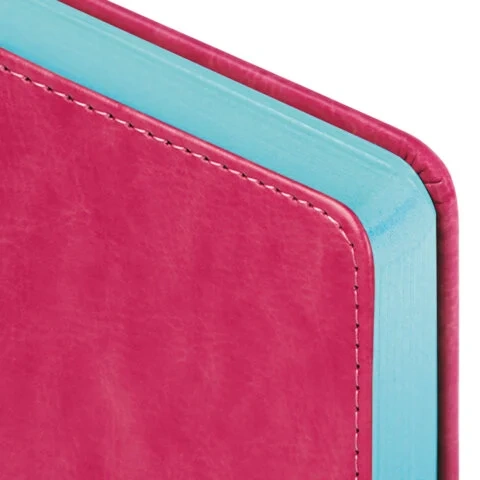 Твердая обложка стилизована под гладкую кожу розового цвета. Материал обложки подходит для горячего тиснения. Для удобства пользования ежедневник снабжен держателем для ручки. Цветной срез в контраст обложки придает ежедневнику особый шарм. Дополнением является закладка-ляссе, с помощью которой при необходимости можно быстро открыть ежедневник на нужной странице. Ежедневник снабжен обширным справочным материалом. В конце имеются 4 страницы для записей и заметок.