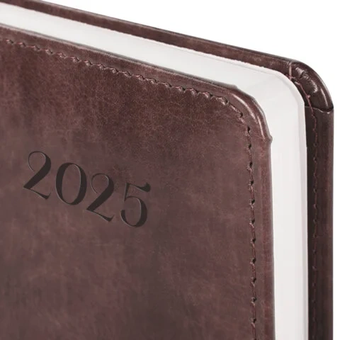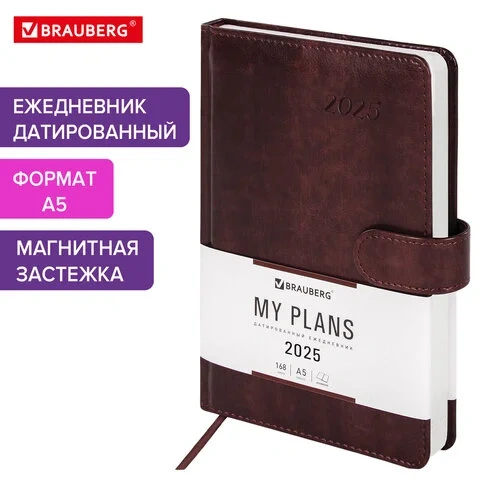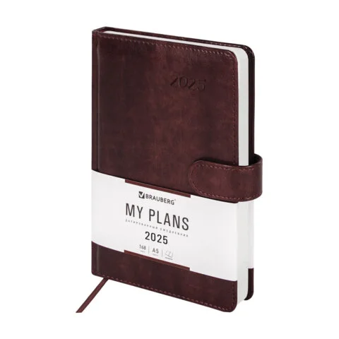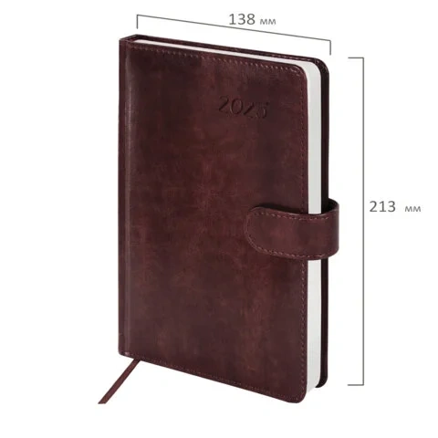 Ежедневник датированный 2025, А5, 138x213 мм, BRAUBERG 'Legend', под кожу, застежка, коричневый, 115