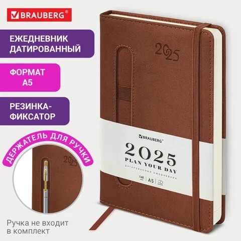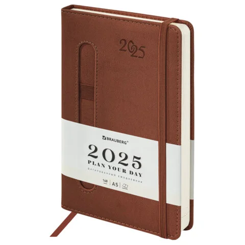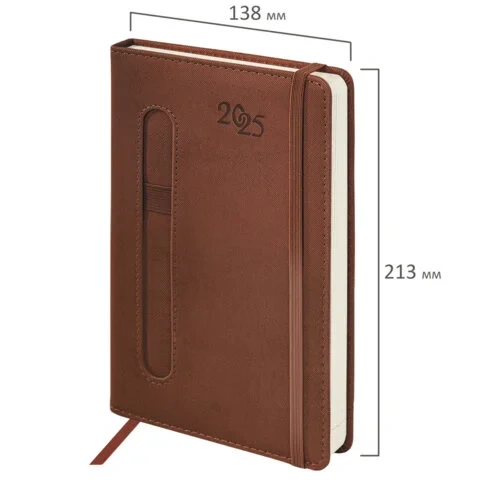 Ежедневник датированный 2025 А5 138x213 мм, BRAUBERG 'Optimal', под кожу, резинка-фиксатор, держател
