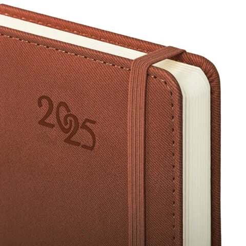 Внутренний блок включает 168 листов тонированной бумаги плотностью 70 г/м2. Каждая страничка имеет перфорированный угол. Благодаря стандартному формату А5 (138х213 мм) датированный ежедневник удобно использовать как в офисе, так и на выездных деловых встречах. Твердая обложка стилизована под старую кожу в рубчик и выполнена в благородном коричневом цвете. Подходит для горячего тиснения.