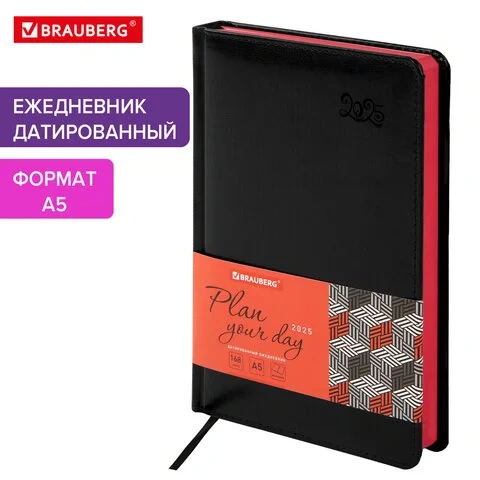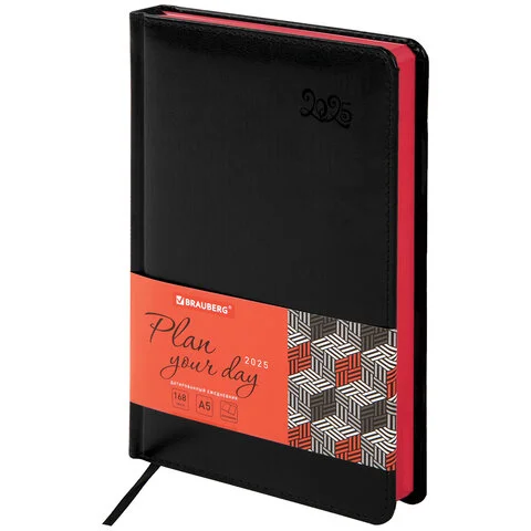 Ежедневник датированный 2025 А5 138x213 мм BRAUBERG 'Rainbow', под кожу, черный, 115803