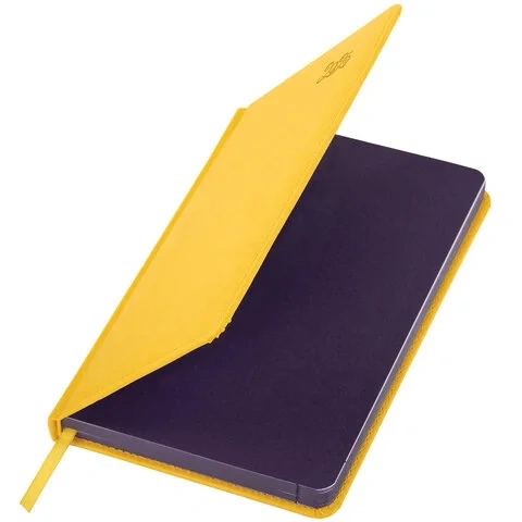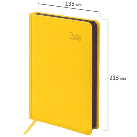Твердая обложка стилизована под гладкую кожу яркого желтого цвета. Подходит для горячего тиснения. Срез и форзац ежедневника окрашены на контрасте с цветом обложки, что придает ему особый шарм. Дополнением является закладка-ляссе, с помощью которой при необходимости можно быстро открыть ежедневник на нужной странице. Помимо прочего, ежедневник снабжен обширным справочным материалом. В конце имеются 4 страницы для записей и заметок.