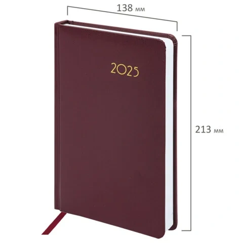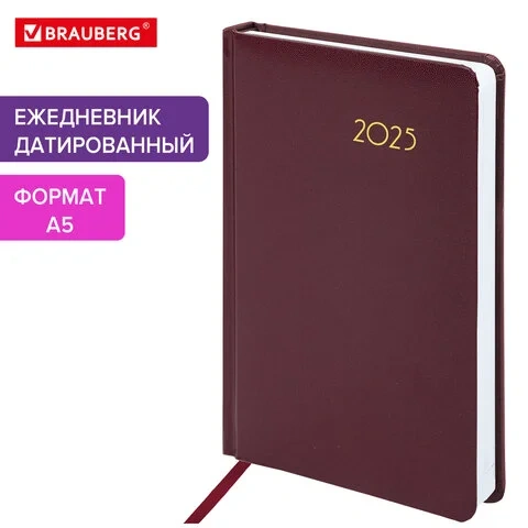 Ежедневник датированный 2025 А5 138x213 мм BRAUBERG 'Select', балакрон, бордовый, 115810