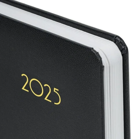 Жесткая книжная обложка классического черного цвета с легкой рельефной фактурой напоминает натуральную кожу. Материал обложки – балакрон, подходит для тиснения только фольгой. Дополнением является закладка-ляссе, с помощью которой при необходимости можно быстро открыть ежедневник на нужной странице. Помимо прочего, ежедневник снабжен обширным справочным материалом. В конце имеются 4 страницы для записей и заметок.