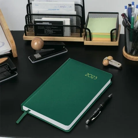 Ежедневник датированный 2025 А5 138x213 мм BRAUBERG 'Select', балакрон, зеленый, 115809