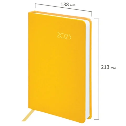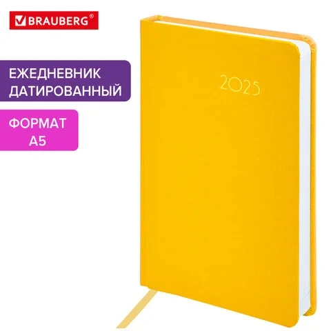Ежедневник датированный 2025 А5 138x213 мм BRAUBERG 'Select', балакрон, желтый, 115812