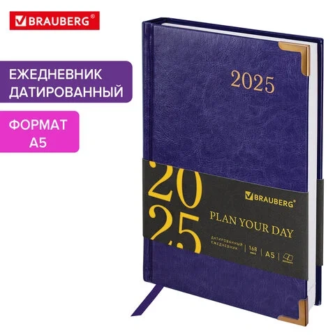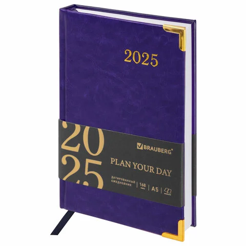 Ежедневник датированный 2025 А5 138x213 мм BRAUBERG 'Senator', под кожу, фиолетовый, 115818