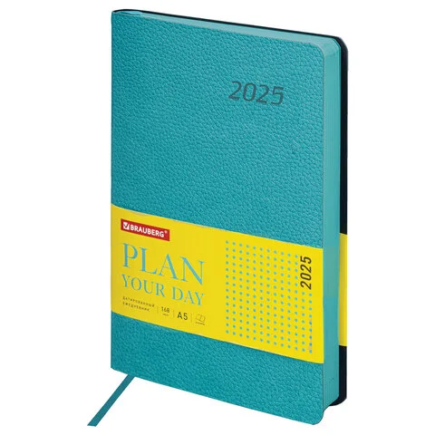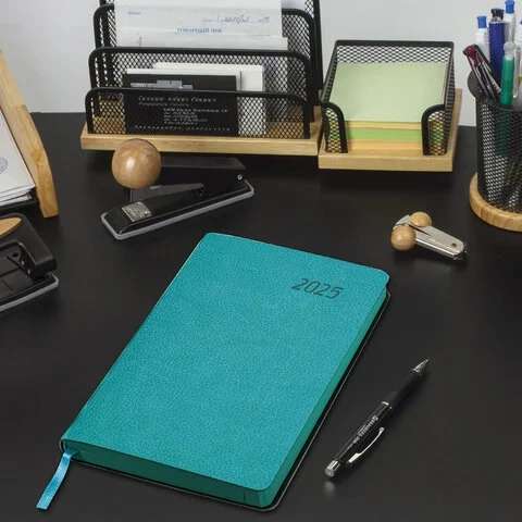 Ежедневник датированный 2025, А5, 138x213 мм, BRAUBERG 'Stylish', под кожу гибкий, бирюзовый, 115824