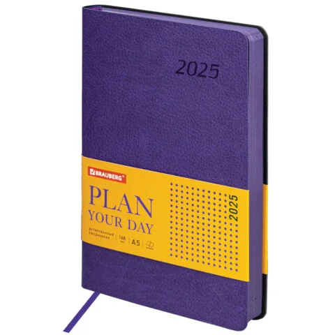 Ежедневник датированный 2025, А5, 138x213 мм, BRAUBERG 'Stylish', под кожу гибкий, фиолетовый, 11582