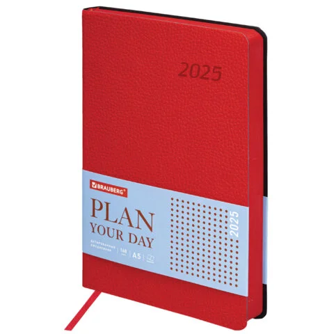 Ежедневник датированный 2025, А5, 138x213 мм, BRAUBERG 'Stylish', под кожу гибкий, красный, 115826