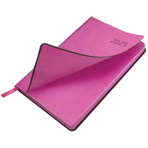 Внутренний блок включает 168 листов тонированной бумаги плотностью 70 г/м2. Каждая страничка имеет перфорированный угол. Благодаря стандартному формату А5 (138х213 мм) ежедневник удобно использовать как в офисе, так и на выездных деловых встречах. Мягкая (интегральная) обложка стилизована под фактурную кожу яркого розового цвета. Подходит для горячего тиснения. Дополнением является закладка-ляссе, с помощью которой при необходимости можно быстро открыть ежедневник на нужной странице. Ежедневник снабжен справочным материалом.