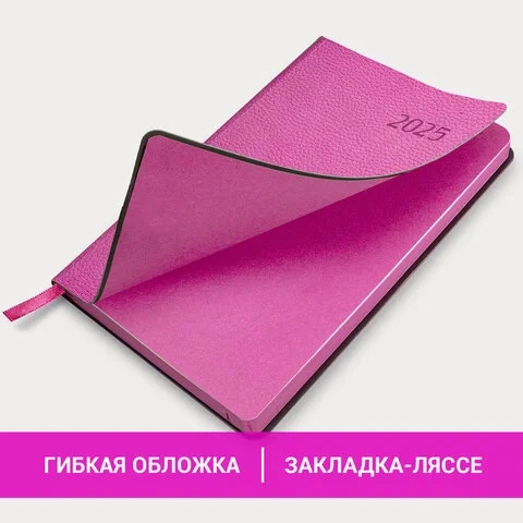 Ежедневник датированный 2025, А5, 138x213 мм, BRAUBERG 'Stylish', под кожу гибкий, розовый, 115822