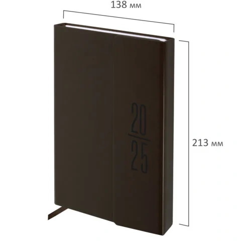 Ежедневник датированный 2025, А5, 138x213 мм, BRAUBERG 'Towny', под кожу, клапан, коричневый, 115766
