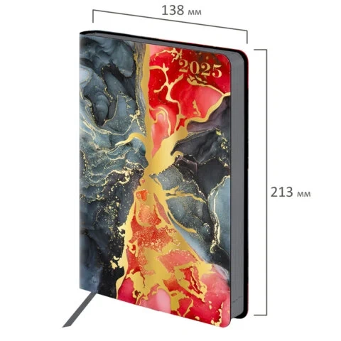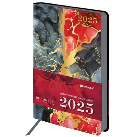 Ежедневник датированный 2025 А5 138x213 мм BRAUBERG 'Vista', под кожу гибкий, 'Marble', 115864