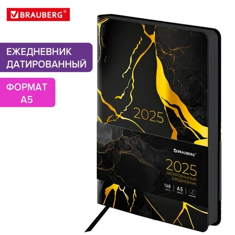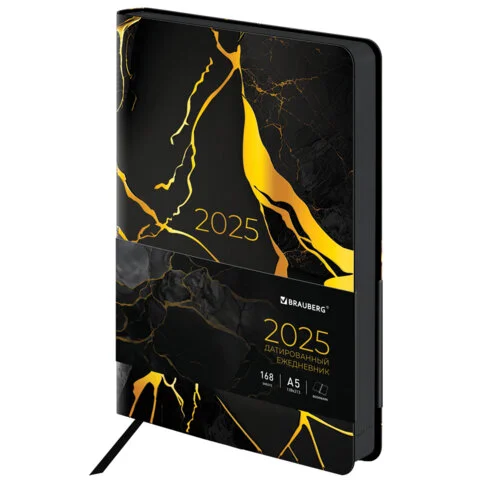 Ежедневник датированный 2025 А5 138x213 мм BRAUBERG 'Vista', под кожу гибкий, 'Мрамор', 115863