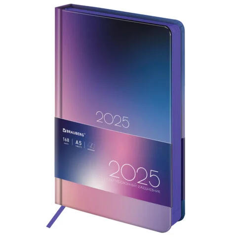 Ежедневник датированный 2025 А5 138x213 мм BRAUBERG 'Vista', под кожу твердый, 'Blur', 115872