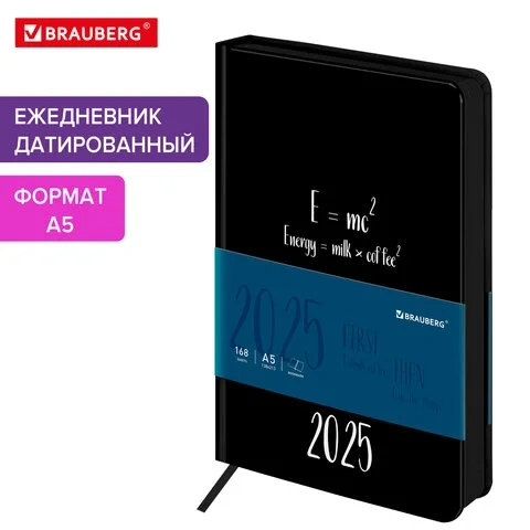 Ежедневник датированный 2025 А5 138x213 мм BRAUBERG 'Vista', под кожу твердый, 'Энергия', 115878