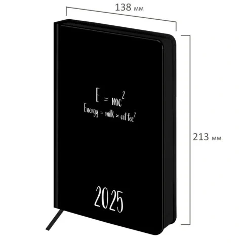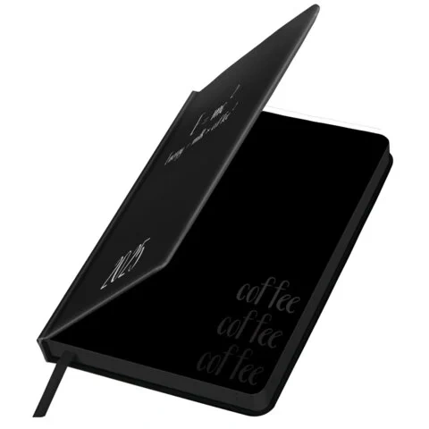 Внутренний блок включает 168 листов белой бумаги плотностью 70 г/м2. Каждая страничка имеет перфорированный угол. Благодаря стандартному формату А5 (138х213 мм) ежедневник удобно использовать как в офисе, так и на выездных деловых встречах.