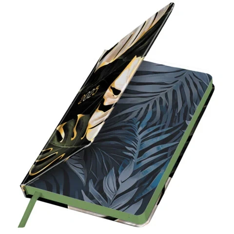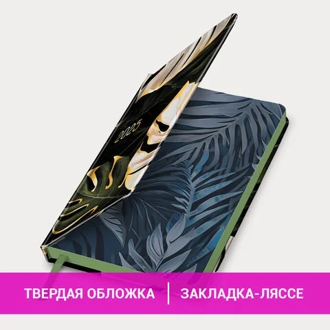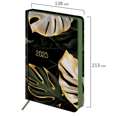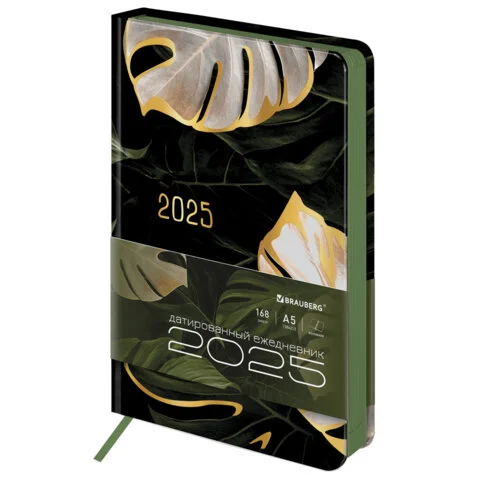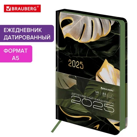 Ежедневник датированный 2025 А5 138x213 мм, BRAUBERG 'Vista', под кожу твердый, 'Листья', 115877