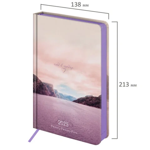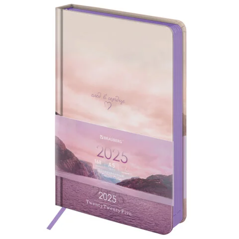 Ежедневник датированный 2025 А5 138x213 мм, BRAUBERG 'Vista', под кожу твердый, 'Пейзаж', 115874