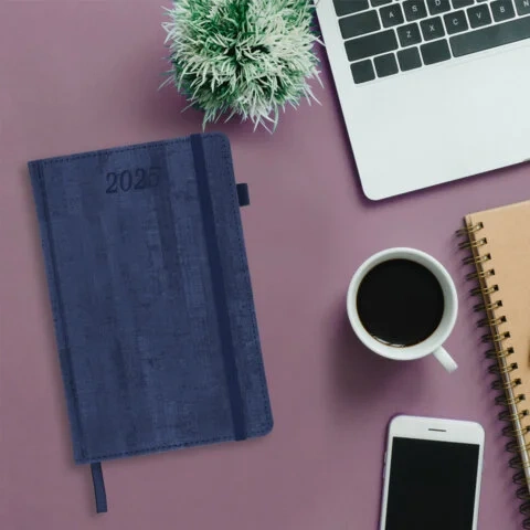 Твердая обложка стилизована под благородное дерево и выполнена в стильном синем цвете. Подходит для горячего тиснения. Снабжен резинкой-фиксатором, благодаря чему ежедневник не откроется в сумке или портфеле. Дополнениями являются закладка-ляссе, с помощью которой при необходимости можно быстро открыть ежедневник на нужной странице, и держатель для ручки. Ежедневник снабжен справочным материалом. В конце имеются 4 страницы для записей и заметок.