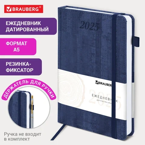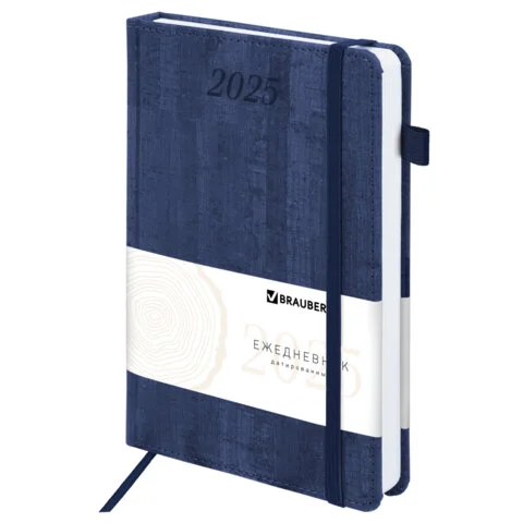 Ежедневник датированный 2025, А5, 138x213 мм, BRAUBERG 'Wood', под кожу, держатель для ручки, резинк