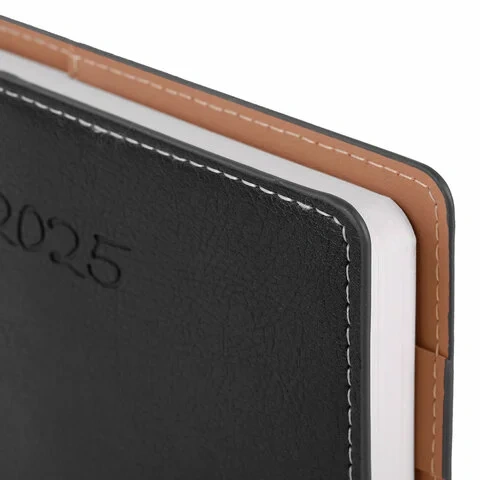 Внутренний блок включает 168 листов кремовой бумаги плотностью 70 г/м2. Каждая страничка имеет перфорированный угол. Благодаря классическому формату А5 (143х218 мм) ежедневник удобно использовать как в офисе, так и на выездных деловых встречах.