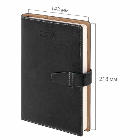Ежедневник датированный 2025, А5, 143х218 мм, BRAUBERG 'Journal', под кожу, застежка, органайзер, че