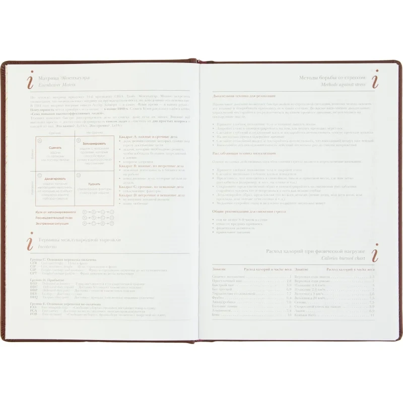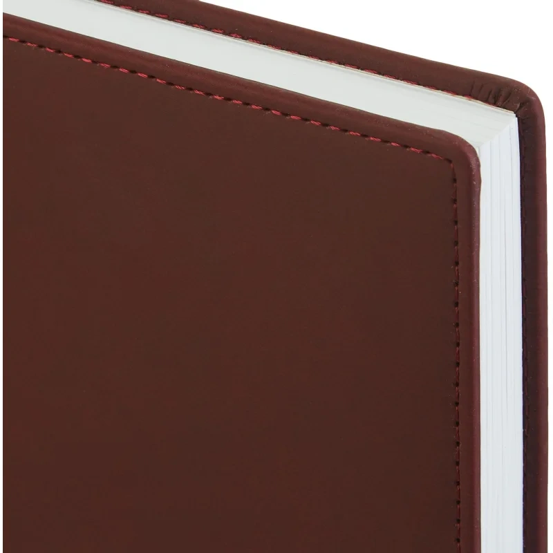Ежедневник датированный 2025 год Attache Velvet искусственная кожа Soft Touch А5 168 листов бордовый. Датированный ежедневник - это удобный инструмент для планирования рабочего времени. Он подойдет для офисного использования. Ежедневник позволяет структурировать задачи и фиксировать важные события. Твердая обложка изделия выполнена из искусственной кожи Soft Touch. Бордовый цвет обложки придает ежедневнику классический вид. Скругленные углы и декоративный шов по периметру добавляют изысканности. Данный ежедневник имеет формат А5. Внутренний блок содержит 168 листов из офсетной белой бумаги плотностью 60 г/кв.м. Это обеспечивает хорошую читаемость и долговечность использования. Тип крепления - сшивка. Печать блока в 2 краски. Вид линовки - линейка. Размер: 14.6х20.6 см. Дополнительно ежедневник включает 16 страниц справочной информации. Здесь представлена матрица Эйзенхауэра, термины международной торговли, методы борьбы со стрессом и другая полезная информация, что делает его практичным помощником в работе.